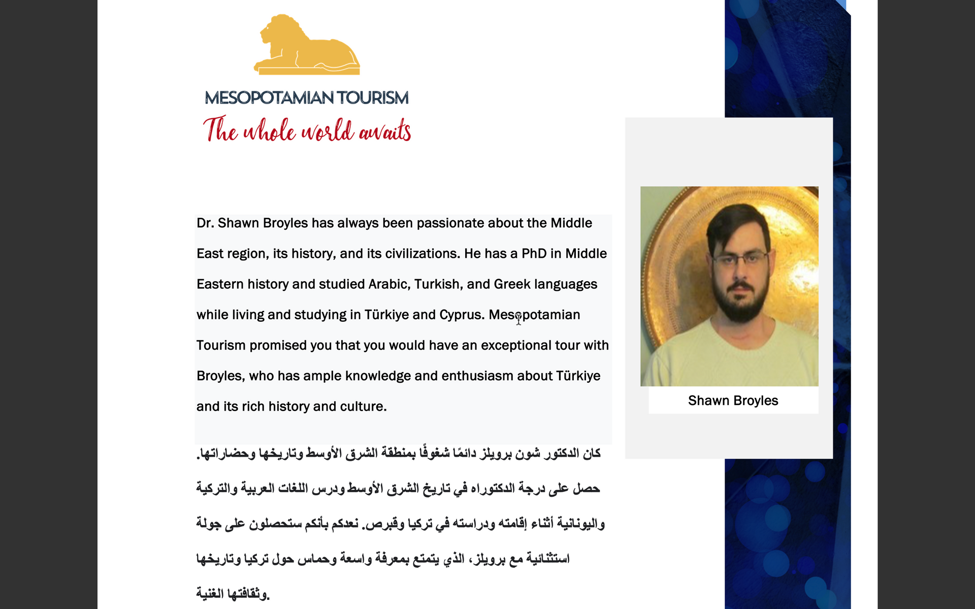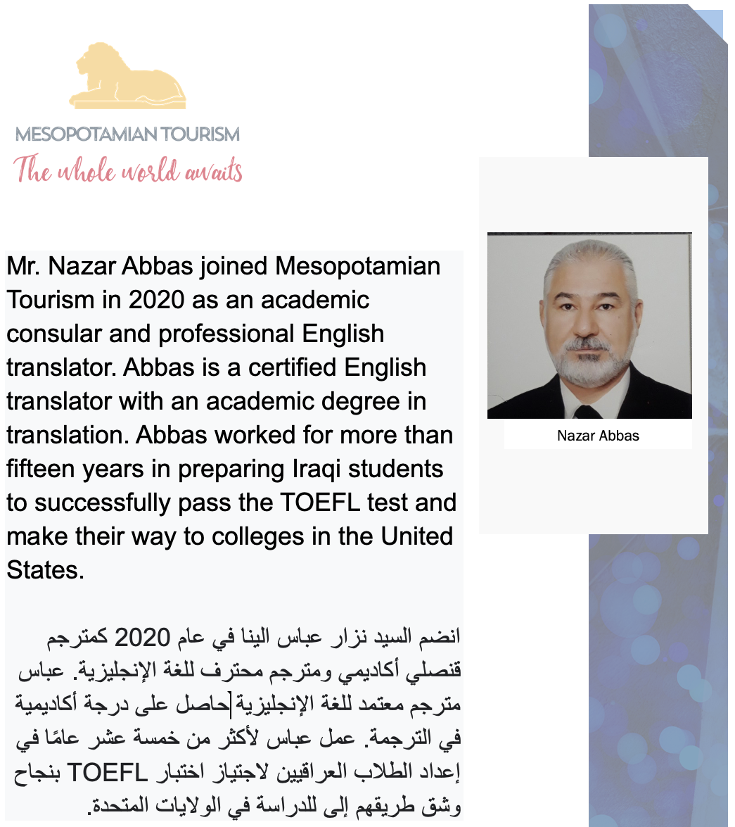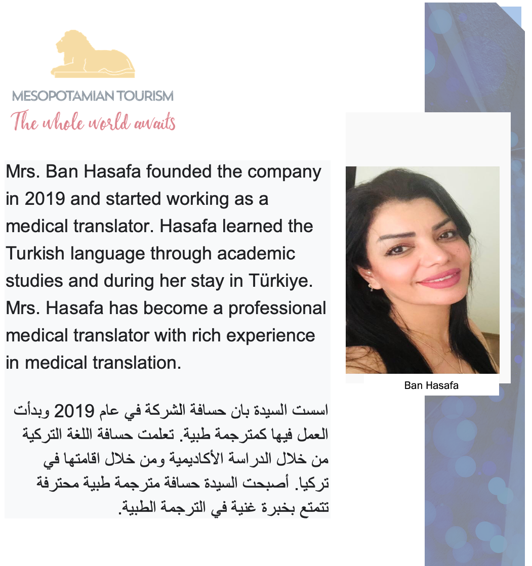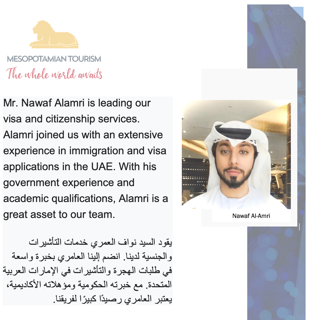 Mesopotamian is a tourism company based in Dubai, UAE. We specialize in medical, educational, and leisure travel. Our services include visas, residency, citizenship, preparation, and consultation. With the help of a network of local partners, Mesopotamian Tourism operates in different parts of the Middle East, North Africa, Europe, Central and South Asia, Oceania, and North America.